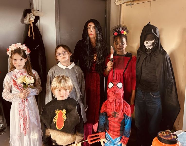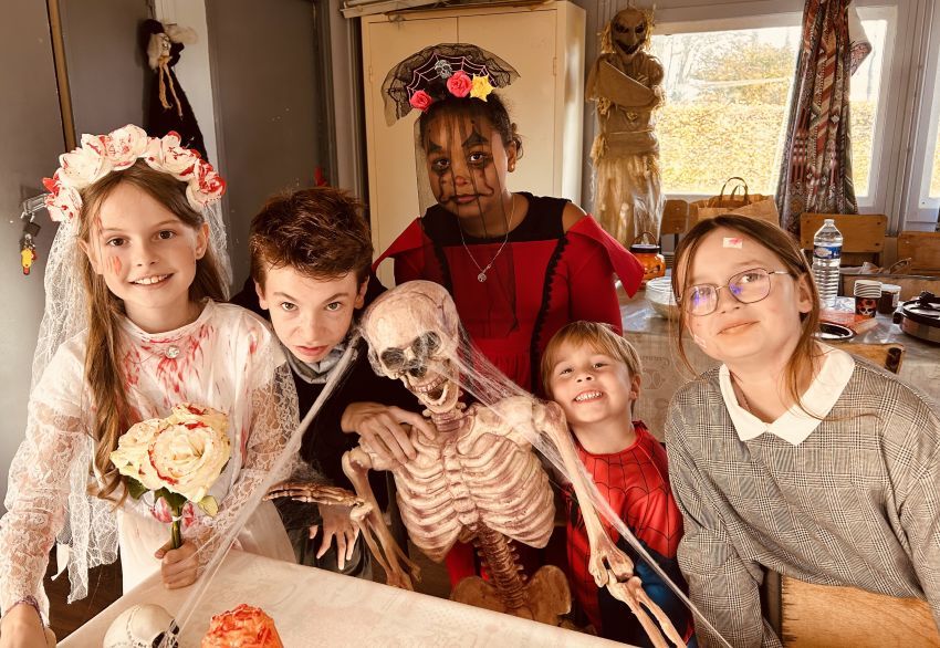 Après avoir participer à des jeux et déguster un goûter une dizaine d'enfants déguisée en toutes sortes de monstres ont déambuler dans la commune pour récolter des friandises auprès des habitants de la commune